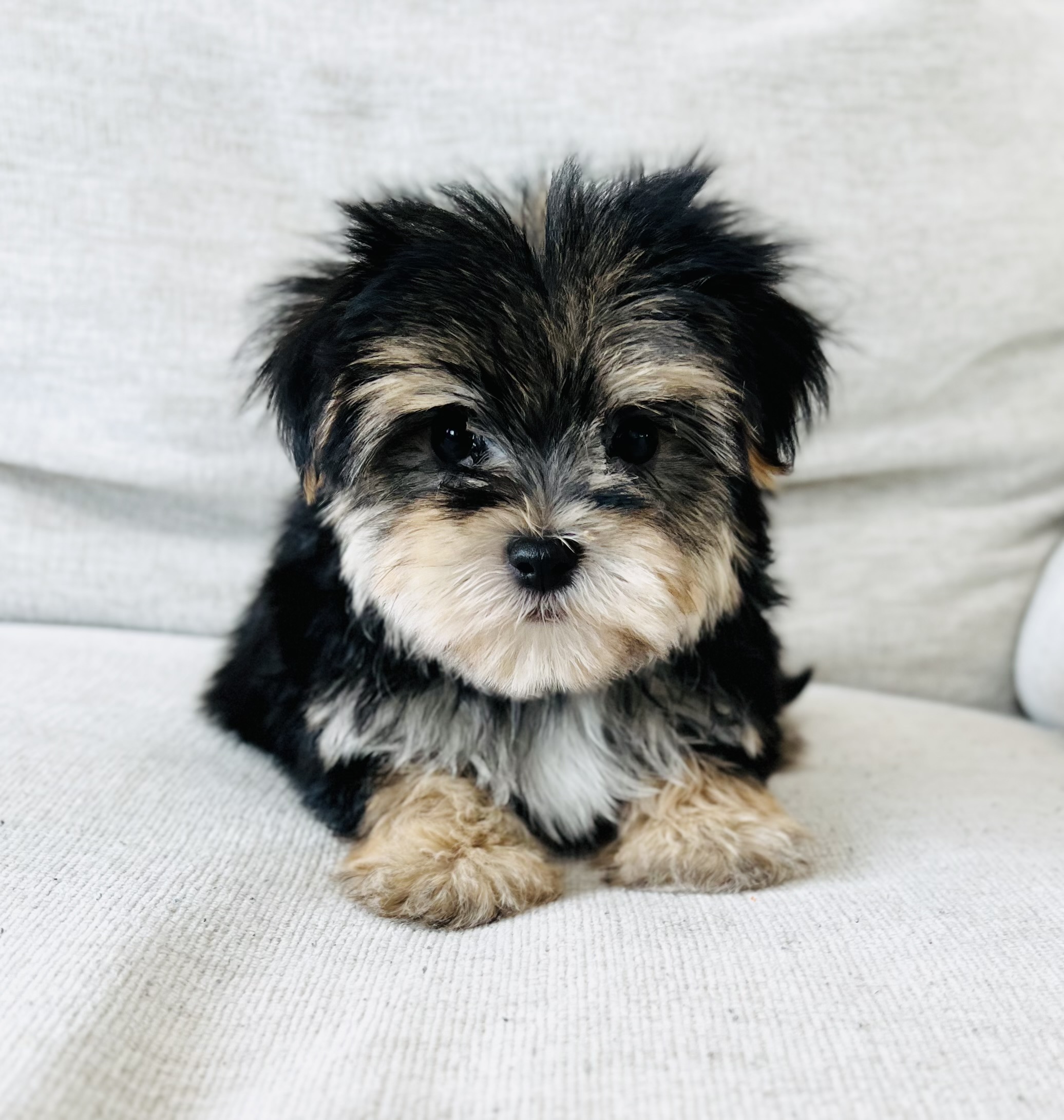 Mâle morkie noir et tan disponible dès maintenant. Il fera 5.5 livres à l'âge adulte. Le prix est de 2250$