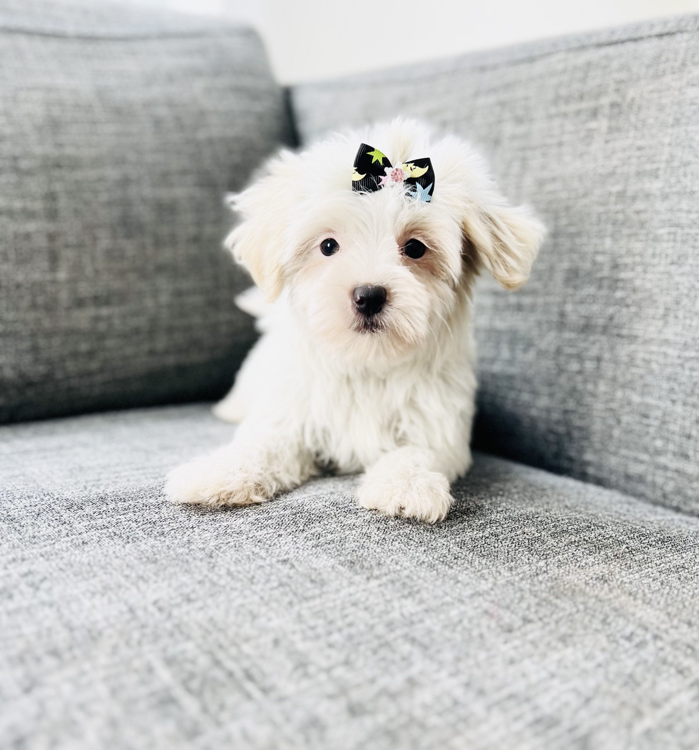 Femelle morkie toy crème / blanche , disponible maintenant. Elle fera 4 livres ou moins à l'âge adulte. Elle est sociable, affectueuse. Le prix est de 2350$