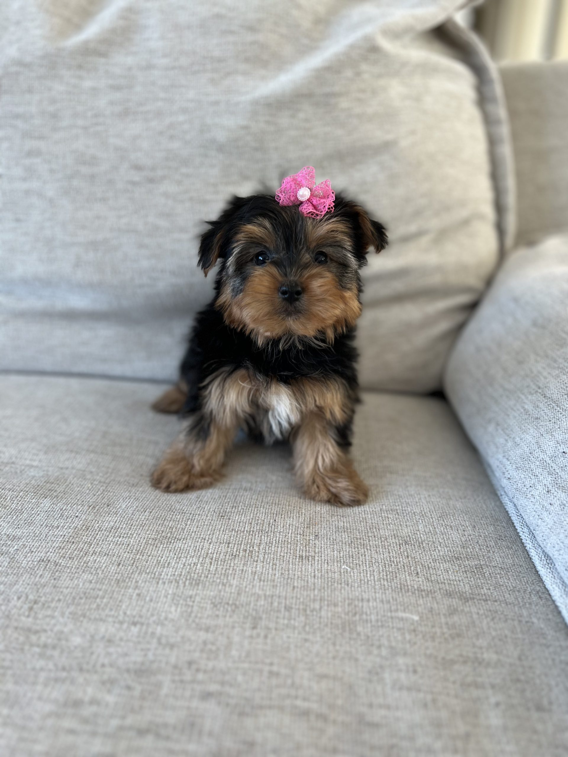 Femelle morkie noir et tan / feu disponible dès maintenant. Elle fera 6 livres à l'âge adulte. Le prix est de 2350 $